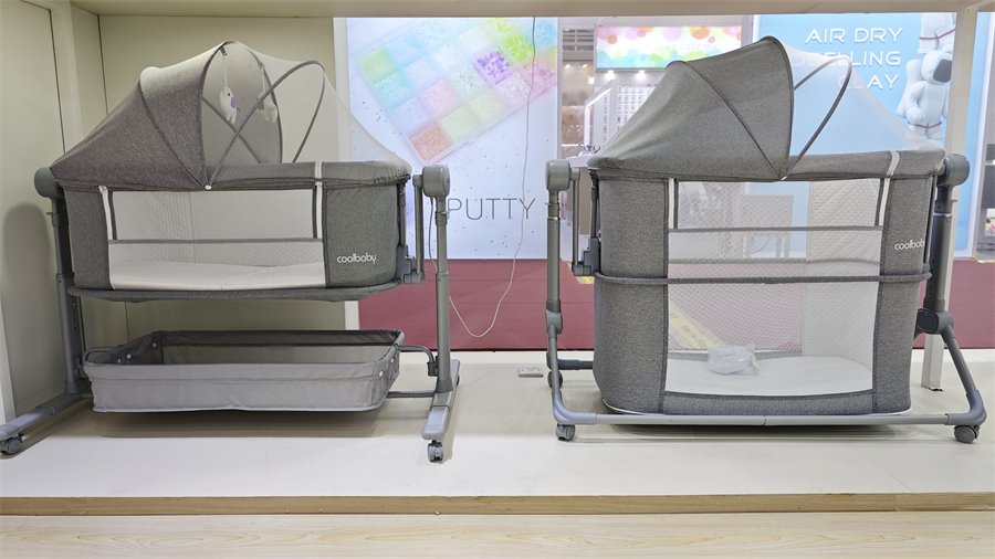 酷豆丁攜帶眾多自主研發(fā)的產(chǎn)品在廣交會(huì)展位上精彩亮相,其中包括擁有一鍵收合的嬰兒床、嬰兒車,多款精美的嬰兒搖床、搖椅,還有傾力打造的新品——智能電動(dòng)搖床。