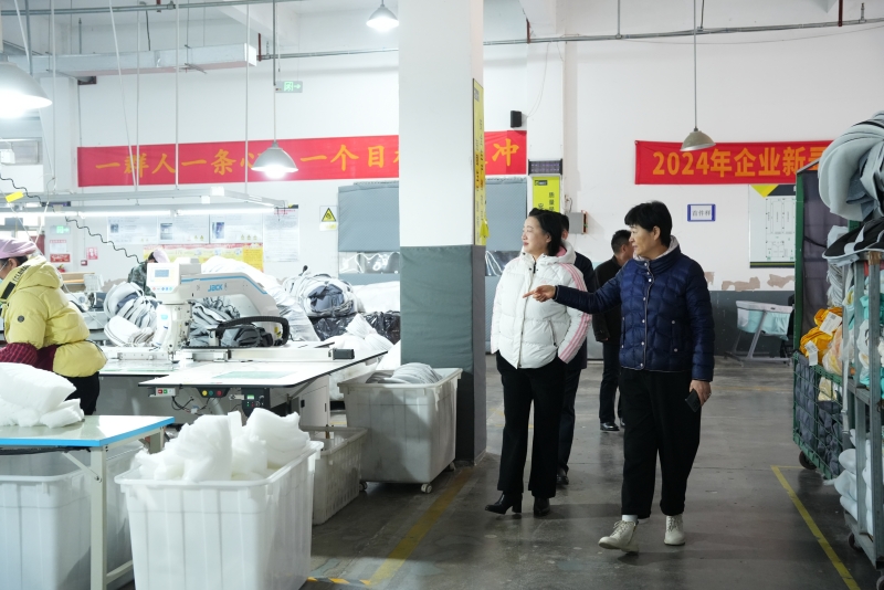 調(diào)研過程中,于軍深入了解酷豆丁的經(jīng)營現(xiàn)狀,聚焦企業(yè)發(fā)展中遇到的困難,同時積極宣導(dǎo)相關(guān)政策,為企業(yè)排憂解難。于軍在董事長張迎年的陪同下,首先來到酷豆丁樣品間,細致考察公司產(chǎn)品,詳細詢問2024年酷豆丁的銷售情況。隨后,一行人前往縫紉車間,實地考察生產(chǎn)狀況,了解生產(chǎn)流程、設(shè)備運行以及人員工作情況。