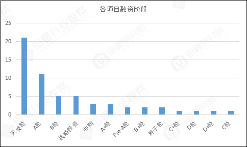 從融資輪次看,今年上半年天使輪以21起的數(shù)量占比36%,位居融資輪次數(shù)量第一名,A輪以11起的數(shù)額排名第二。同時,在融資數(shù)量與金額縮水的情況下,資本對早期項目的投資態(tài)度愈發(fā)謹慎。