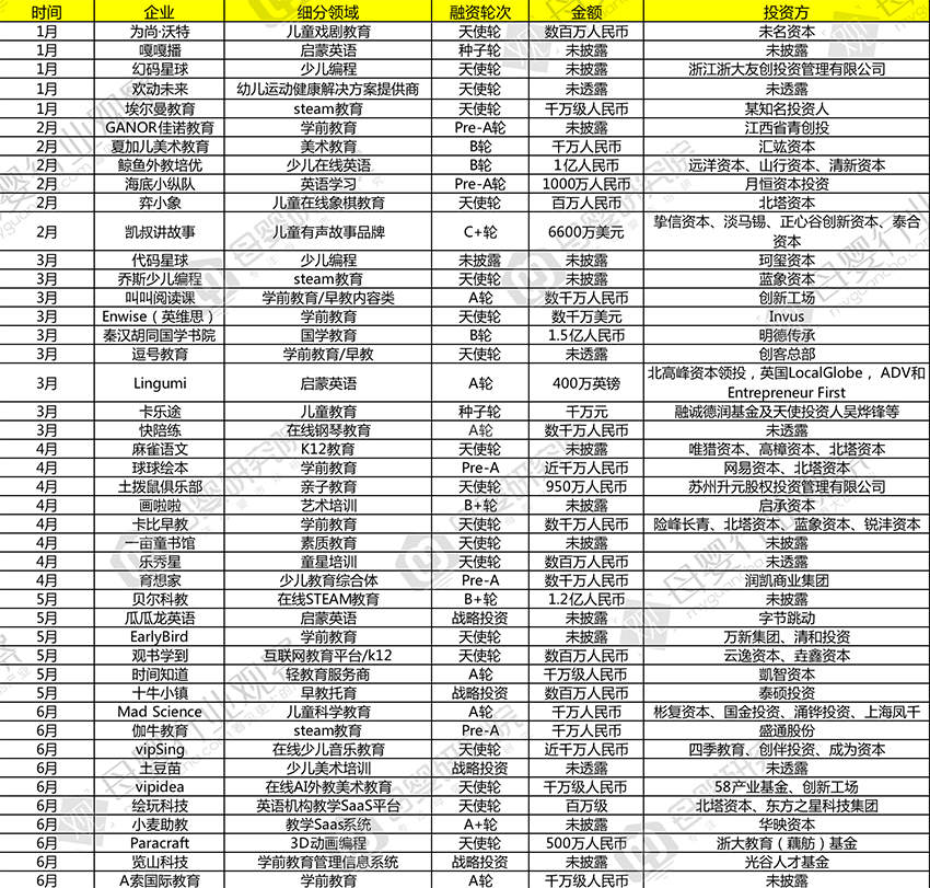 (2020上半年早幼教投融資數(shù)據(jù))