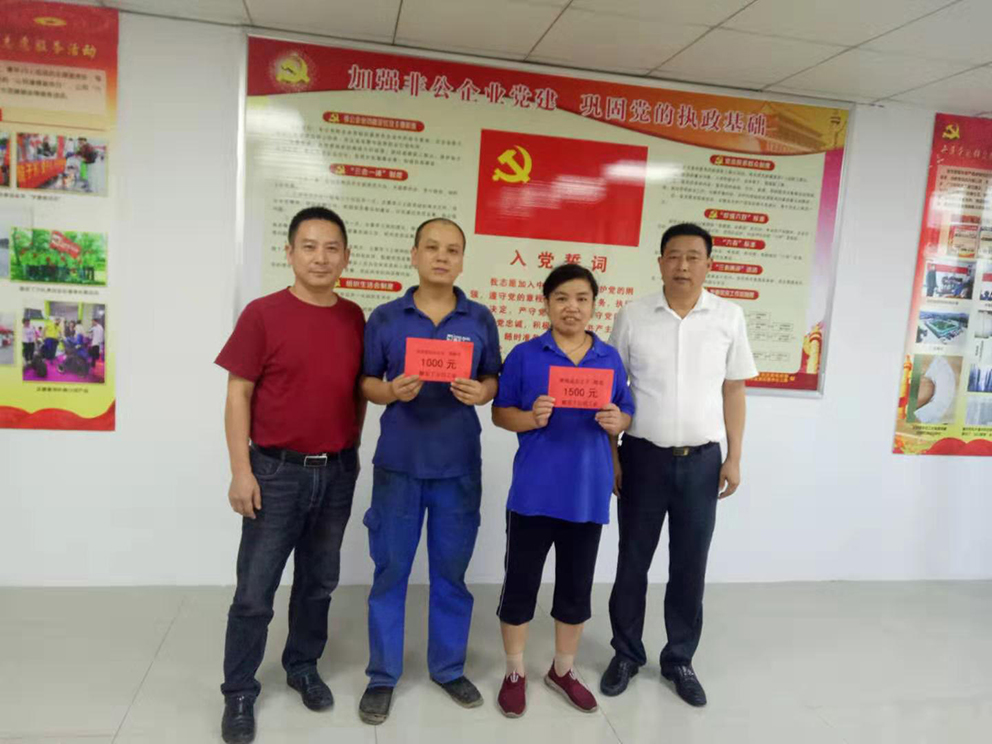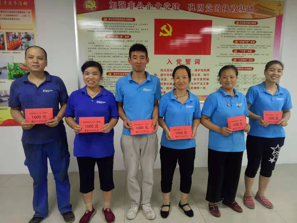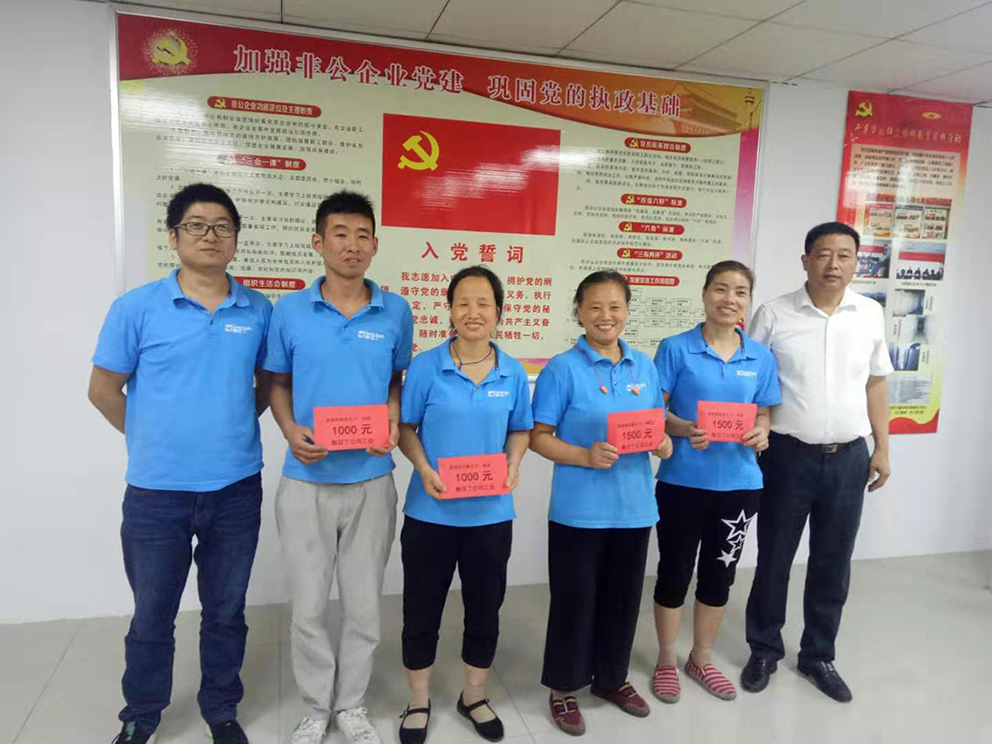 2019年8月30日,安徽酷豆丁兒童用品有限公司工會委員會,組織對今年考入一本、二本的職工子女獎(jiǎng)勵(lì)。條件是在公司工作滿一周年的職工;一本大學(xué)獎(jiǎng)勵(lì)1500元,二本大學(xué)獎(jiǎng)勵(lì)1000元。2019年度符合條件的有一本大學(xué)的吳云之子陳龍、李發(fā)繼之子李建、張本勤之子鄭陳龍;分別獎(jiǎng)勵(lì)現(xiàn)金1500元。二本大學(xué)的程遠(yuǎn)山之女程新月、孫榮臣之子孫揚(yáng)、孫興敏之子張杰;分別獎(jiǎng)勵(lì)現(xiàn)金1000元,工會主席張德會分別將獎(jiǎng)金頒發(fā)給六位職工,他們一致表示對酷豆丁公司和董事長的真誠感謝,將在各自的工作崗位上,努力工作,用更加優(yōu)異的成績回報(bào)公司厚愛。