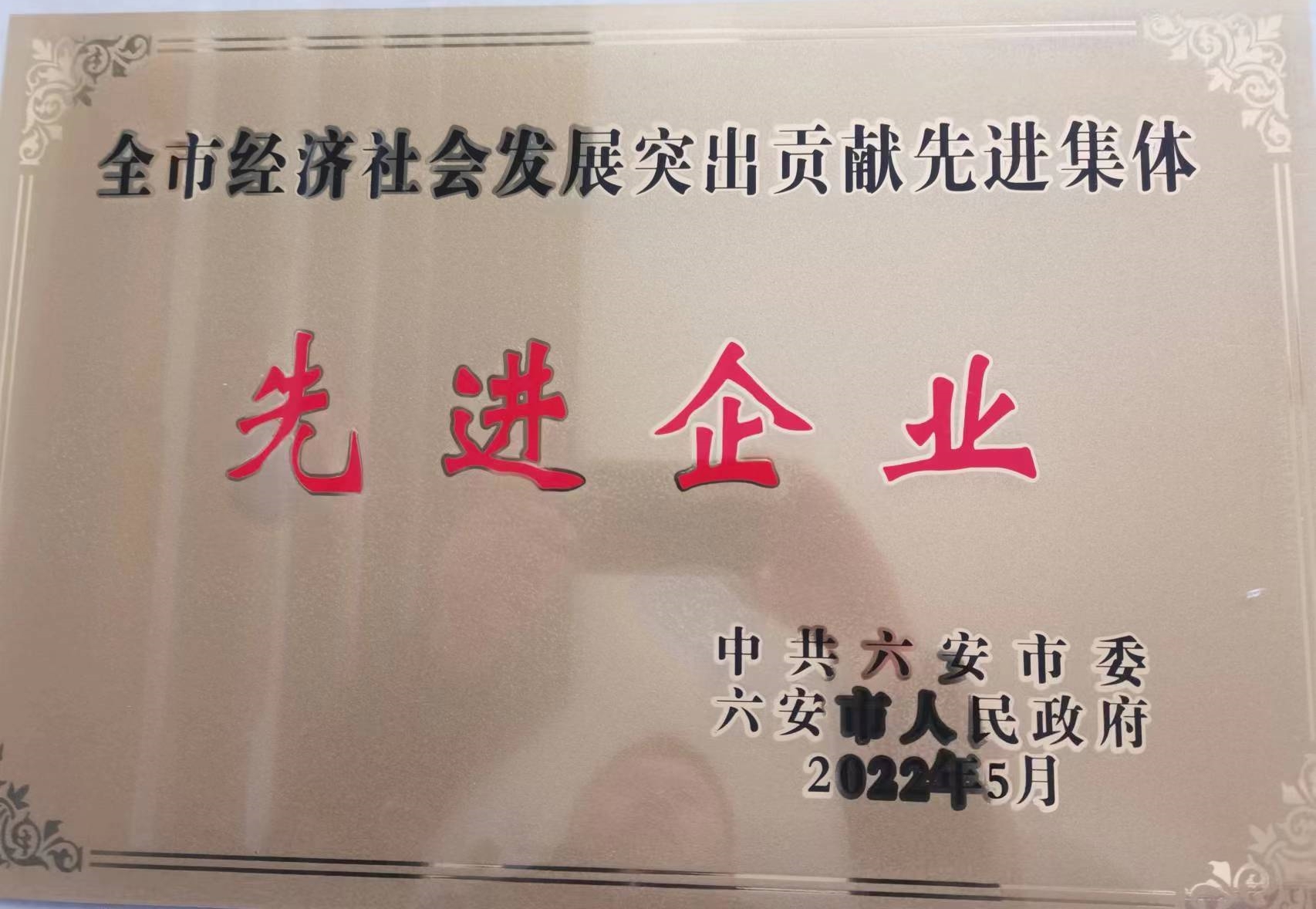 六安市經(jīng)濟(jì)社會(huì)發(fā)展突出貢獻(xiàn)先進(jìn)集體先進(jìn)企業(yè)
