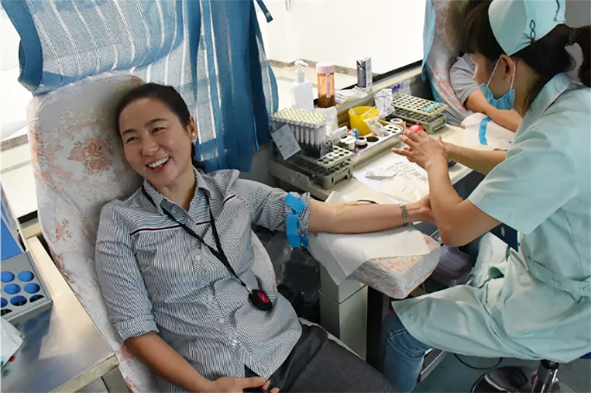 9點多大家陸續(xù)來到廣場旁邊的愛心獻血車,填寫獻血登記表、體檢、化驗、采血……整個過程秩序井然,獻血車內(nèi)洋溢著溫情和感動。有過多次獻血經(jīng)歷的員工,大多顯得坦然從容,也有第一次來參加獻血的,多了幾分緊張和興奮。大家在相互鼓勵中完成無償獻血這一光榮之舉,一起體會奉獻愛心,收獲快樂。